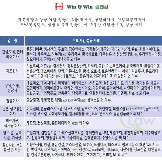 로펌 윈앤윈의 전문 업무에 대한 종합 분석 보고서